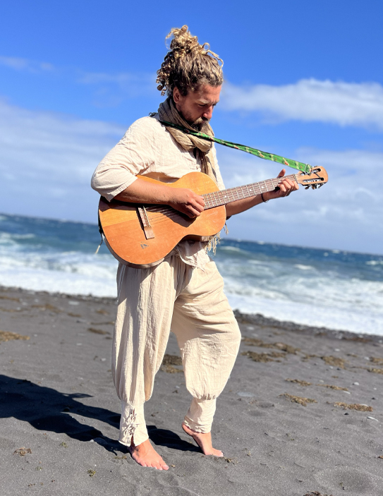 Though I’ve only been playing guitar for about 10 years, my focus has always been on feeling music, not perfecting it. I combine singing, guitar, breathwork, and intuitive guidance to create spaces where music becomes medicine.